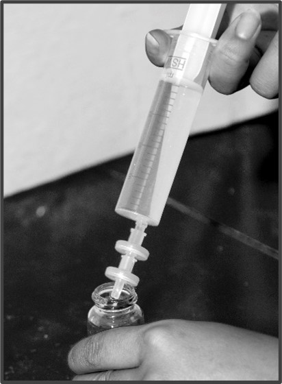 - 使用 20 mL注射器抽取溶液直至注滿